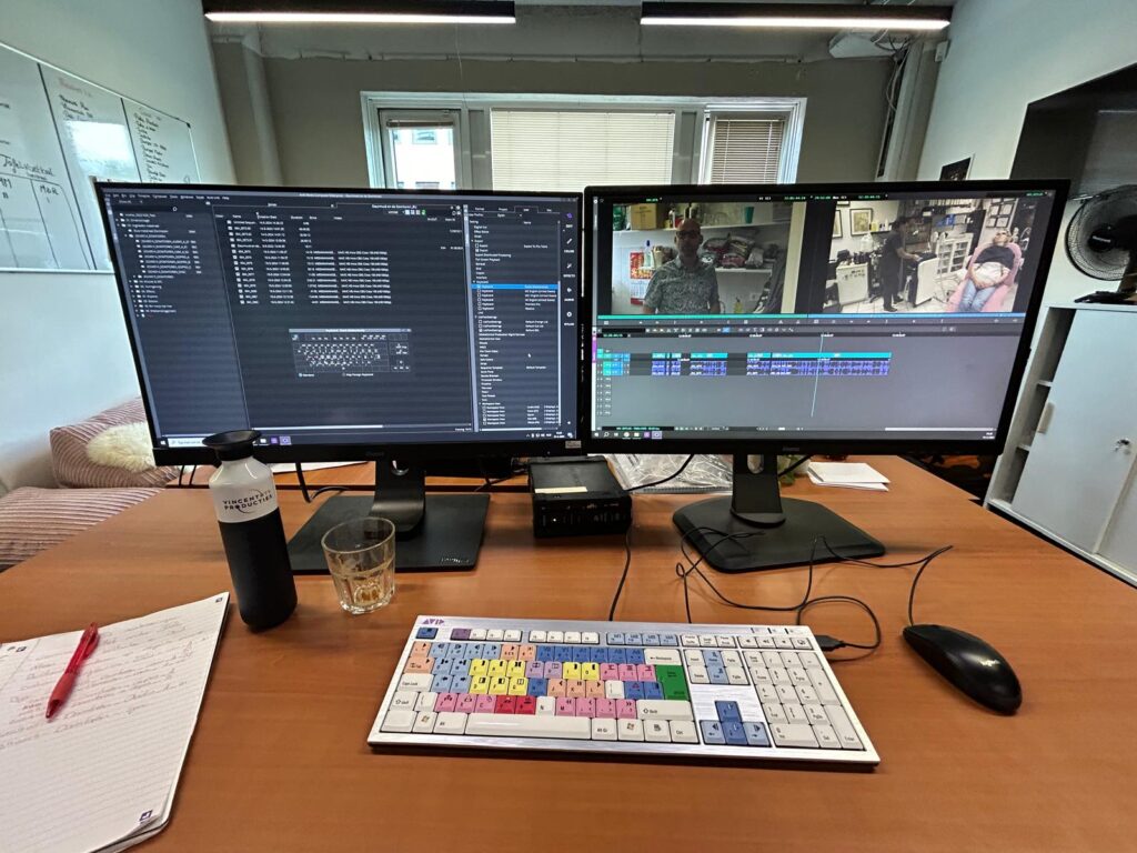 Een van mijn functies die ik dagelijks deed, was het inladen van het gefilmde materiaal, je krijgt allerlei verschillende kaartjes en harde schijven binnen vanuit de productie en deze zette ik in de database van het bedrijf. Vanuit hier zette ik alles over in AVID en kon ik vervolgens alles klaarmaken voor de editors, denk dan bijvoorbeeld aan al het materiaal syncen (dat is al het materiaal gelijk leggen, dus je zorgt ervoor dat de audiokanalen, camera’s & Gopro’s gelijk lopen op de tijdlijn).