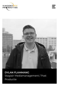 Ik was in de periode dat ik hier stage liep werkzaam als mediamanager. Dit is eigenlijk de functie die centraal staat in de postproductie, ik heb van alles gedaan tijdens deze stage, van het inladen van het gefilmde materiaal, tot aan camera’s wegbrengen voor reparaties en het meedraaien in de productie. Ik heb veel mogelijkheden gekregen om de tv-wereld te leren kennen en te oriënteren. En dat was heel fijn, want ik wist nog niet helemaal welke functie ik binnen dit wereldje wilde aannemen en daarom kwam ik hier met als doel, een functie te vinden die zou aansluiten bij een opleiding op het HBO. Door alle kansen die ze mij hebben gegeven heb ik veel geleerd in mijn periode bij Vincent TV.